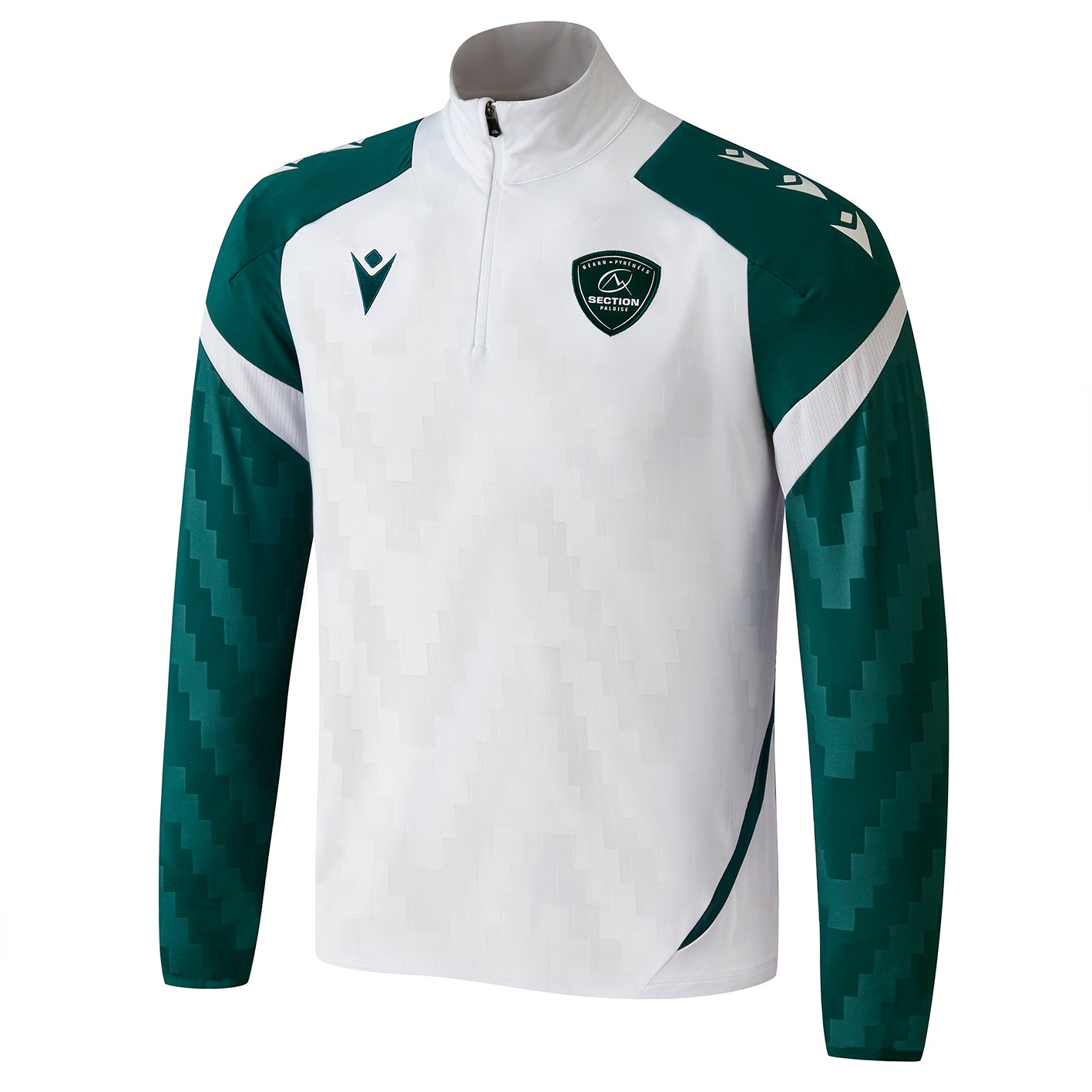 Détails : Veste avec fermeture 1/4 de ZIP. Vous trouverez le blason Section Paloise côté cœur, et le logo Macron côté gauche